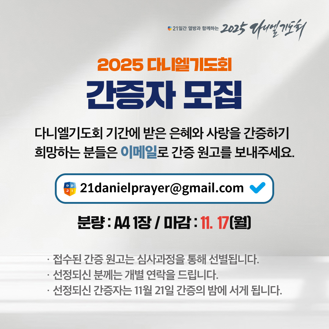 2025 다니엘기도회 간증자 모집